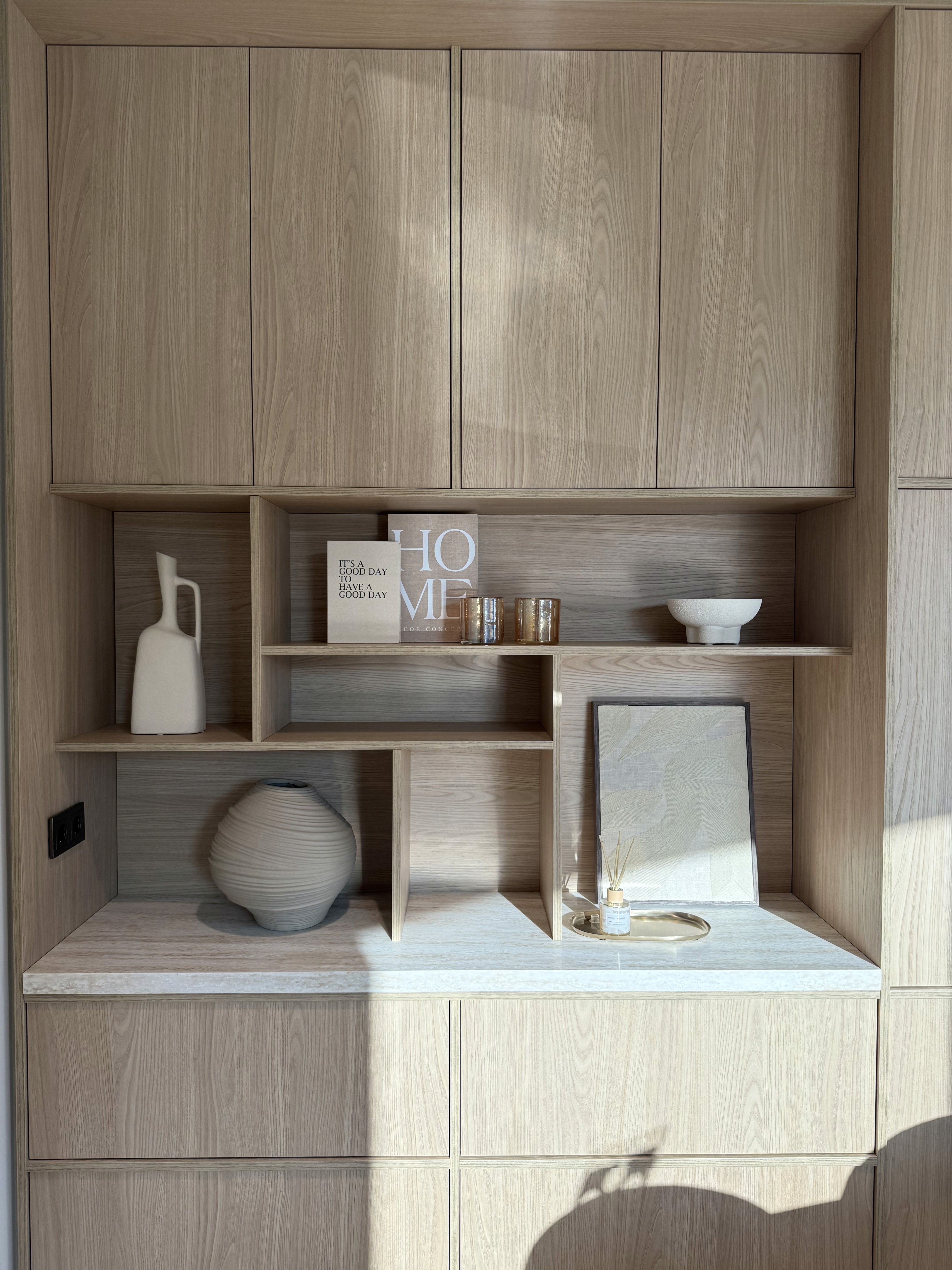 Rustige beige- en bruintinten worden aangevuld met subtiele verlichting. Een moderne, praktische basis wordt afgewisseld met opvallende eyecatchers, terwijl glazen deuren de open sfeer behouden en verbinding mogelijk maken.